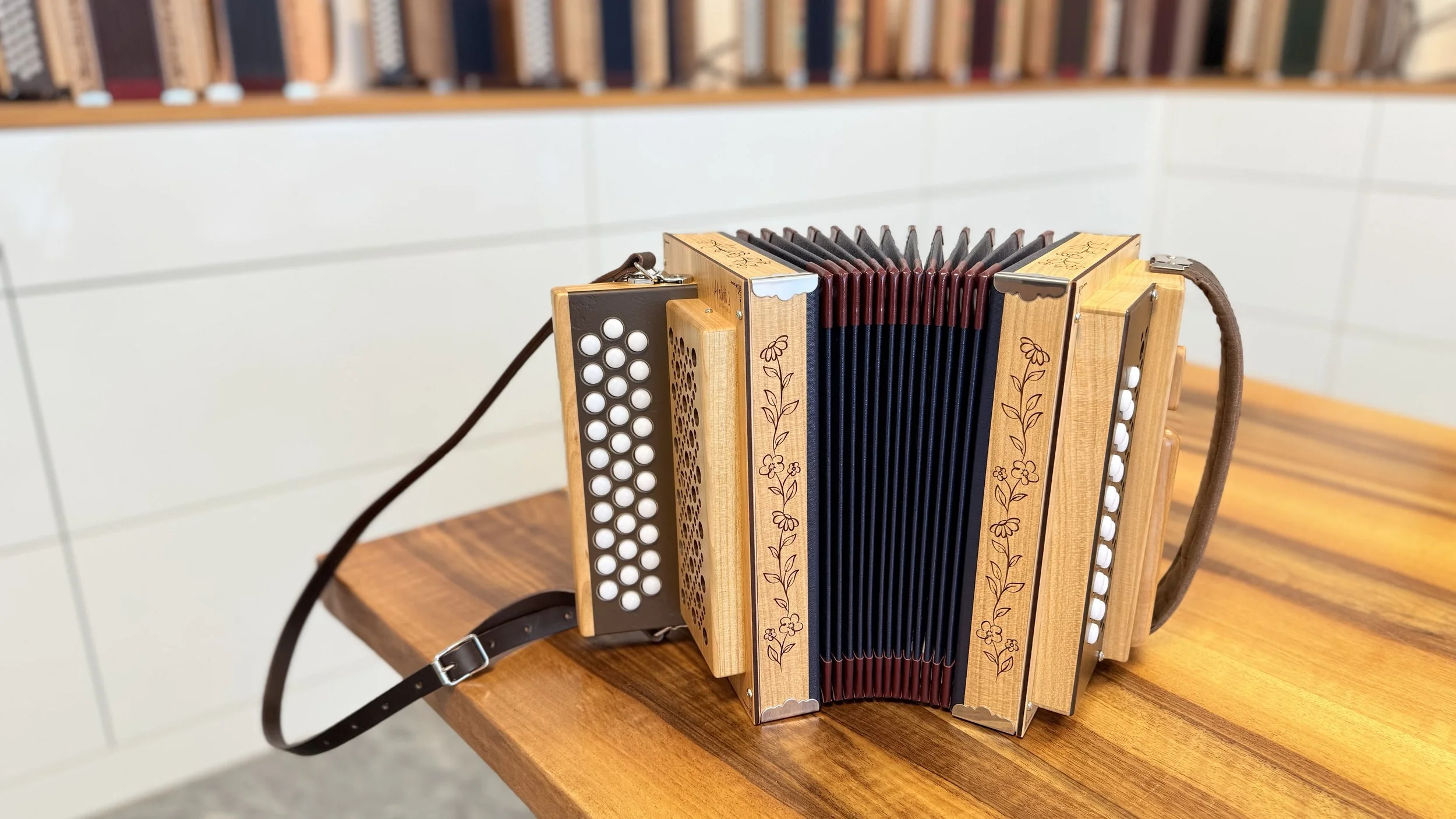 14 Bass, 2-chörigDas geeignete Instrument für ganz junge Schüler. Teilungsabstand gleich wie bei allen Örgeli, somit ist der Wechsel auf ein 2- oder 3-chöriges Örgeli jederzeit möglich.